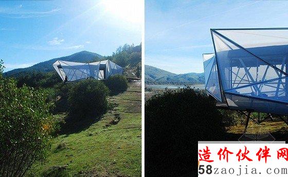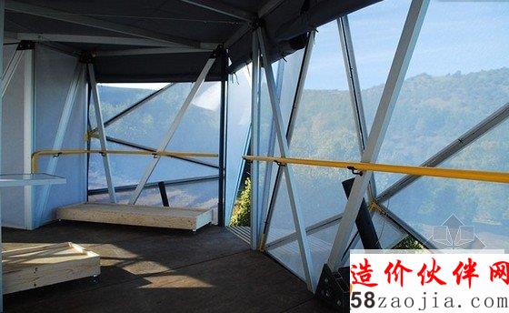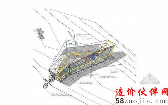 材料是轻量级铝结构和双层极细布。设计时考虑到可持续性,这种小屋可以通过自行车踏板耗能供电。在上雕琢平面的便携式避难所照与踏板的力量。Endless Cycling是Cáceres Céspedes设计的第一个原型,这个移动建筑,可用于自行车训练、比赛或旅游。已经在智利中央山谷,Pencahue,进行了测试。小屋有两个可调滑腿以适应不规则地形,使之比帐篷更舒适同时还容易搭放和拆除。小屋的结构是钢材料和铝制零件,由双层极细织物包裹,遮挡风雨的同时让阳光进来。脚踏式发电机通过led发出人造光,太阳能热水器为骑自行车提供了急需的热水淋浴。包含吃饭、睡觉和存放自行车的空间,这种独特的建筑是最理想的自行车爱好者的必备。