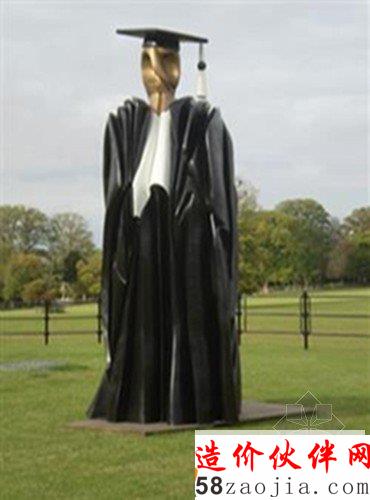 这座雕塑高4米,雕的是身穿学士长袍、头戴方帽的人。据称造价15万英镑。