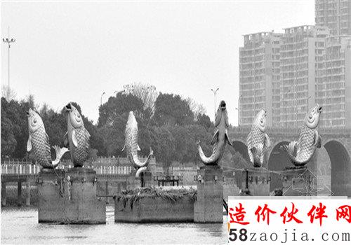 这些鲤鱼,每条有四五米高,纯铜打造,每条鱼花费10多万元。