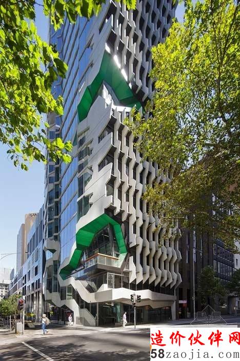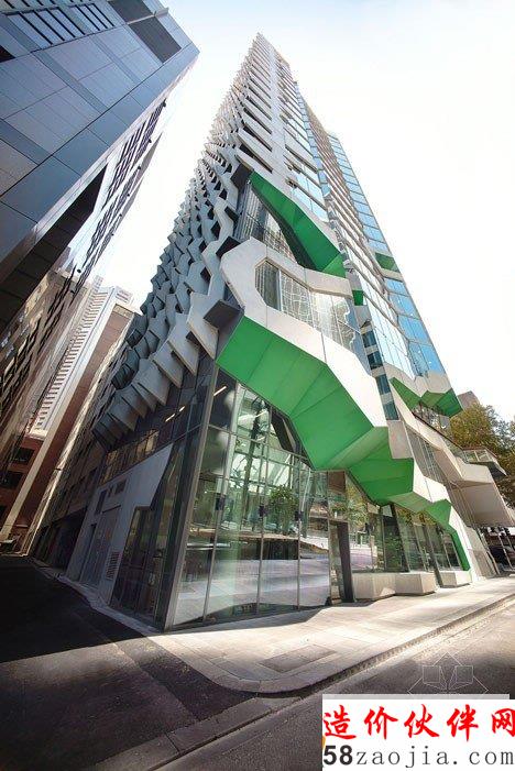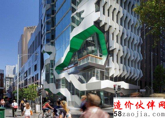 摘要:新澳大利亚建筑师学会总部是一座位于墨尔本的高二十二层的塔楼。设计方Lyons将大楼的雕塑表面分解成楼梯和阳台。建筑名叫41x,塔坐落在展览街和弗林德斯巷的十字路口之间。其表面覆盖着混凝土的鳞片,以代表“凿过的圬工美学”的墨尔本的公共建筑。