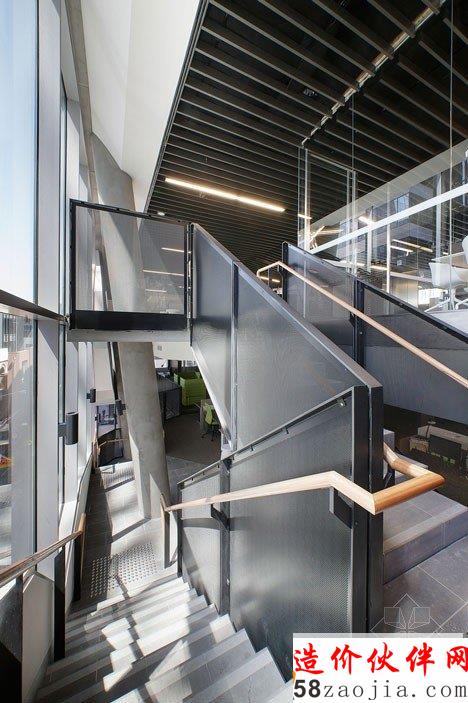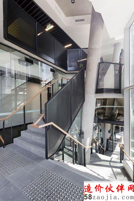 但他们一部分被切掉,为提升公共空间。“设计探讨了拼接的公共和商业建筑,通过连接城市街道空间和研究所,” Lyons主任Adrian Stanic说,“从弗林德斯巷可见一个主楼梯,使建筑成为一个公众参与的焦点。”AIA是该项目的客户,占据了建筑的其中五层,让15商业租户免费租用剩下的房间。“该项目使所有者或租用者者创建他们自己在整个楼内的身份,在这个城市的角落里创建一个独特的垂直商界 ”Stanic补充道。澳大利亚公司Hassell负责AIA的五层室内设计。这些包括一楼“设计港”包含一个名为Architext的建筑和设计书店、作为公共会议空间的咖啡馆和一个会议室。屋顶有一个露台,而自行车存储和更衣室都在地下室。
