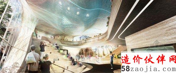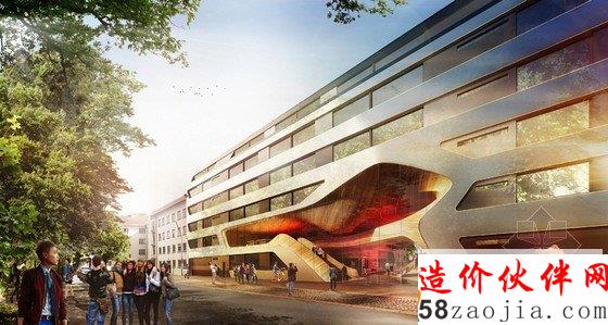 位于慕尼黑的建筑代表了传统旅游、年轻的好奇和渴望,同时也促进交流和沟通。主入口将迁至winthirplatz广场,大曲率的玻璃面入口引导游人进入一个两层高的大厅和内部庭院。连接中庭、餐厅和研讨会的房间到一起,室内还结合高科技特性与当地木制的施工方法。建筑足够容纳相当数量的游客,将雕刻空白变成生动活泼的互动空间。“社区不仅发生在建筑环境,在虚拟空间也越来越多。因此,大厅既正式又是无形的‘云’,简单的设备支持客人之间的互动:一个现代黑色板图形、二维码、屏幕投射地图以及facebook和twitter页面。”Graft说。