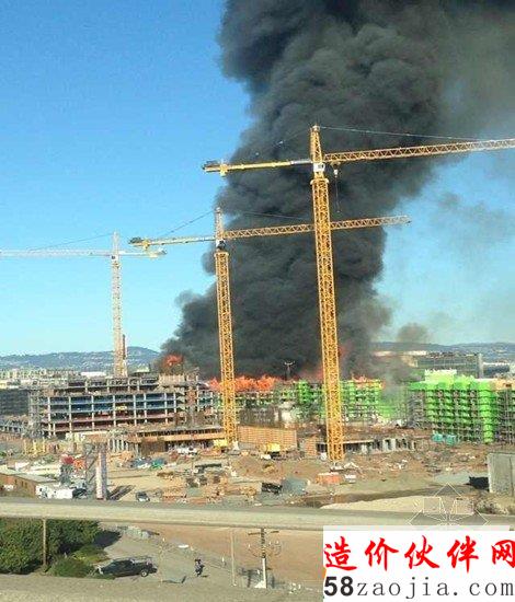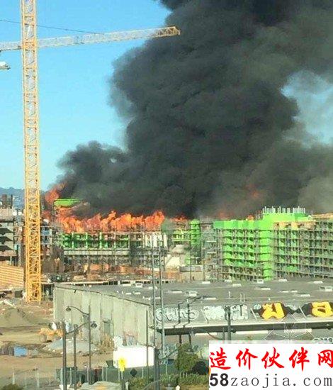 旧金山市中心一栋价值超过2亿美金的在建公寓楼被大火夷为平地