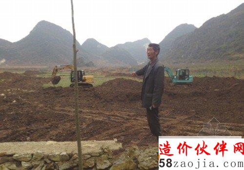 走出隧道,只见两辆挖掘机正在一块上千亩的盆地上紧张工作。