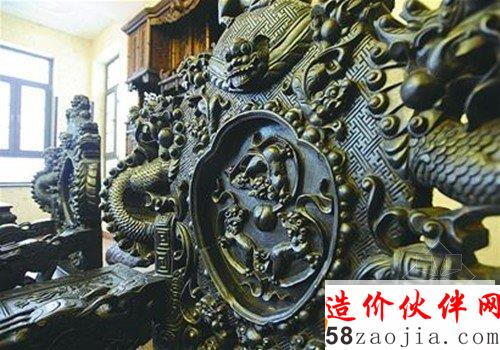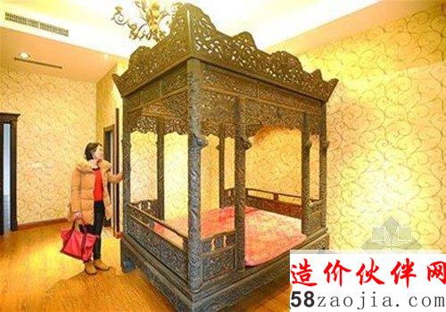 除了大楼修葺一新让人眼前一亮外,更为吸引人的是陆续运抵博物馆的“古董宝贝”。在现场负责人于盛宇的带领下记者来到楼上,年前已运抵青岛的部分珍藏艺术品目前暂时摆放在二、三楼,紫檀古典床具、红木多宝阁、红木博古架、红木脚踏及文房四宝等,散发着浓浓的古木香味,非常典雅。三楼则被设计成客房格局,与普通的客房不同的是,每间客房内的卧床都是极具明清江南风味的红木床具,还有的是二进式的古典床,并配有一对红木博古架。阁楼上还存放一些从各地收集来的牌匾,泛黄的牌匾凸显着它的历史价值。