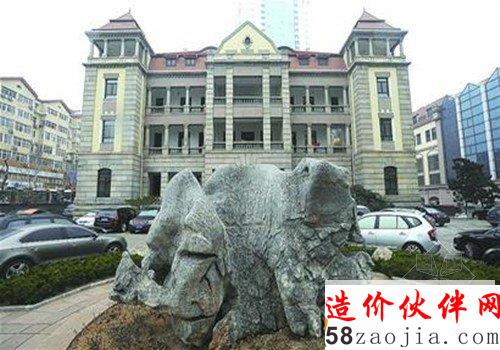 昨日,记者来到位于湖南路39号的东莱银行旧址,和此前矮旧破败的景象不同,新院墙采用复古方式修建,最顶层都用红色瓦片覆盖。在老楼临河南路一侧,一块巨大的铭文牌分外显眼,上面写着“宗鑫铭文”的字样,分由来篇和未来篇等。在大楼正门院外围墙上镌刻的“青岛宗鑫博物馆”七个大字很显眼,进入院内,映入眼帘的是一块巨大的景观石,大楼主体坐北朝南,门口摆放两个石狮子,极具中国气息。
