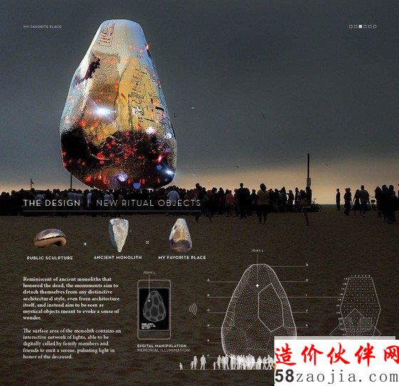 摘要:入围国际竞赛,美国人thomas series的 “设计死亡”、“我最喜欢的地方”诠释了哀悼和埋葬纪念地点的互动雕塑。设计是一个巨大型蛋形雕塑,直接放在公共领域。
