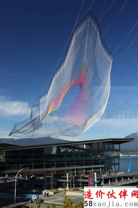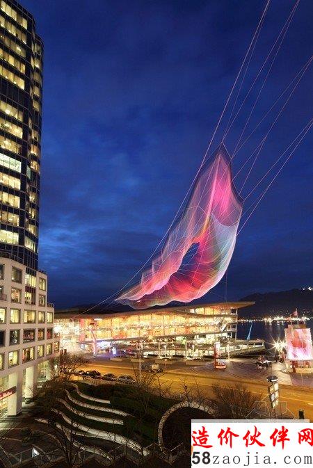 摘要:美国艺术家Janet Echelman马上要在温哥华公布她最新、最大的雕塑。她有广为人知的重塑城市空间的艺术能力,Echelman 精致古代工艺和现代技术的混合作品是由航空学家她和机械工程师、建筑师、照明设计师、景观设计师、制造商共同完成的。