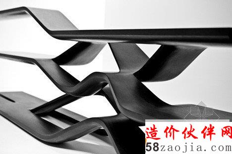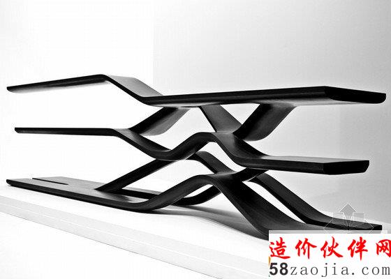 这是建筑师扎哈•哈迪德为意大利品牌CITCO设计的流线型书架,由细长条的黑色花岗岩悬挑组成。这个名叫Tela的CITCO书架是用一整块黑色花岗岩雕刻成一系列相互关联的要素,使得沉重的石头看起来没有重力感。