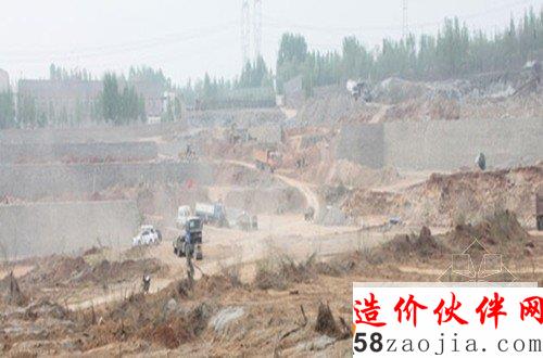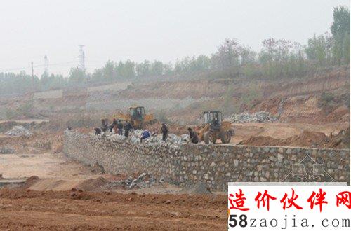 2014年4月10日下午,按照报料人提供的线索,记者驱车来到位于辉县市常村镇王村铺村头。上千亩的施工现场东西走向呈沟状,深达一二十米,工程车辆往返穿梭,施工人员紧张作业,用石块垒成的梯田显得格外刺眼。