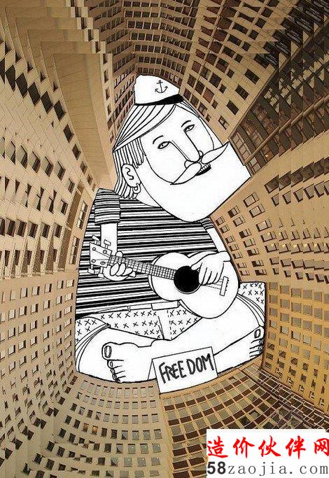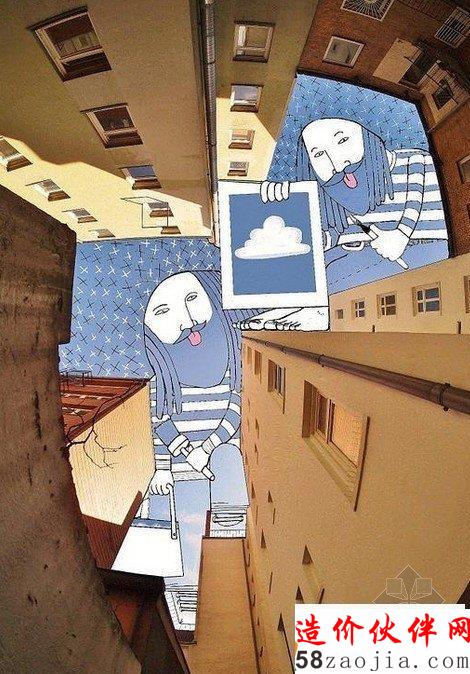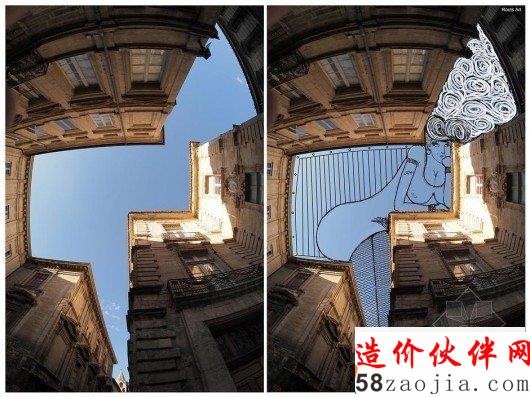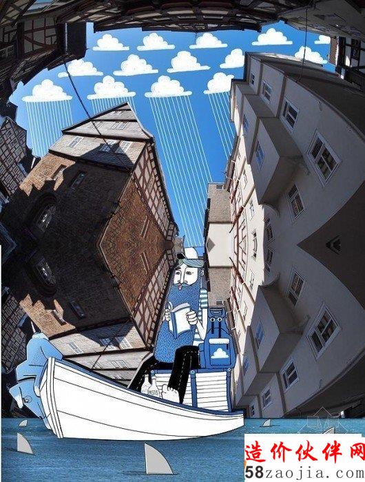 仰望天空,在城市高楼的缝隙中,你会看到些什么呢?法国艺术家Thomas Lamadieu被这些空间吸引,然后创作出了一系列有趣的天空绘画。他通过鱼眼镜头收集幽暗密集的城市景观,在屋顶围合的天空中通过俏皮的插画填补了这些负空间。Thomas通过他异想天开的艺术态度证明了“我们可以用无穷的想象力构建新世界”和“用不同的角度去观察我们身边的城市建筑和日常生活环境”。