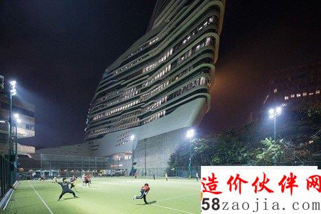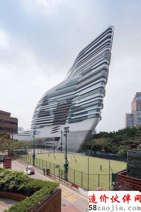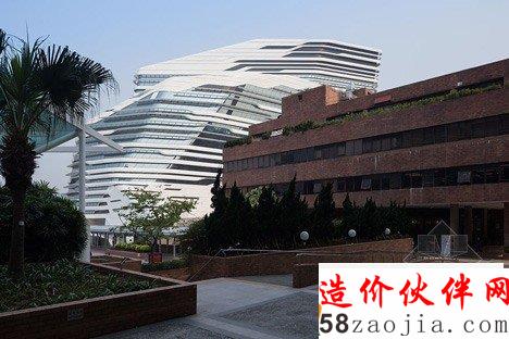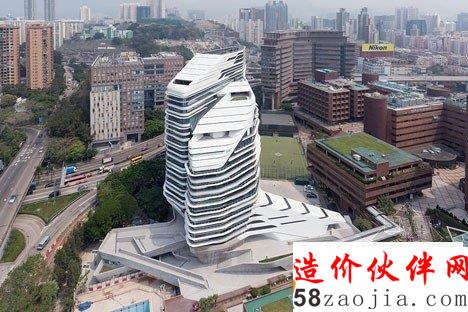 香港理工大学赛马会创新大楼共15层高,建筑面积达15000平方米,塔楼可容纳1800多名学生和职工人员,建筑内部布置了设计室、实验室、工作坊、展览区、多功能教室、阶梯教室和公共休息室等教育和创新设施。