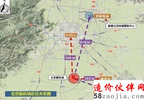 近日,央视国际证实了北京新机场将落地永定河北岸,即在北京市大兴区榆垡镇、礼贤镇和河北省廊坊市广阳区之间,距天安门广场的直线距离约为46公里,距廊坊市市中心直线距离只有约26公里,距离天津机场85公里。与此同时,新机场周边还在规划一系列的配套建设项目,以便乘客可从机场进入地面综合交通网络,比如轨道交通快线等。