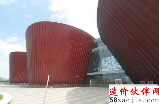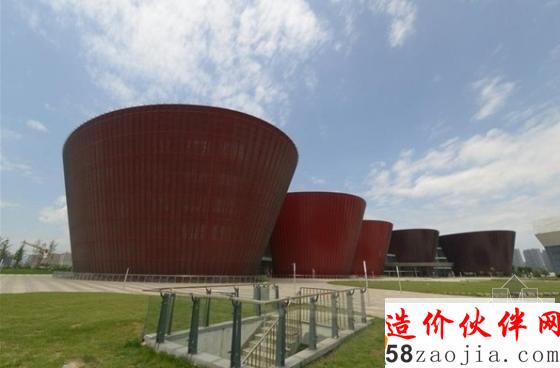 该博物馆建筑方案由法国著名建筑师保罗·安德鲁(国家大剧院设计者)设计事务所设计,灵感来源于中国红灯笼,主要建筑为5个相对独立又相互连通的椭圆倒锥体块连接组合而成,以中国红和青铜色为建筑外墙主色调,于2009年9月30日正式开工建设,建设工期为三年,目前即将投入使用。