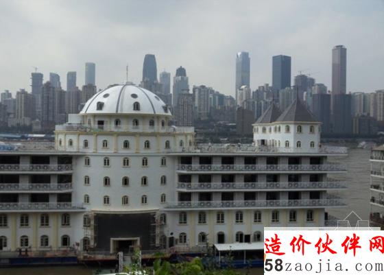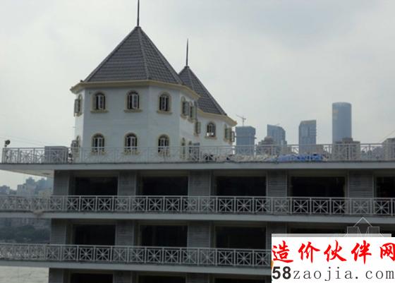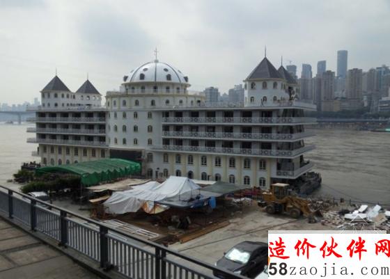 2014年07月24日,重庆南滨路长江边,一个高7层的在建大型趸船造型豪华,俨如一栋建在水上的宫殿,引来市民热议。据悉该建筑耗资1.5亿集娱乐餐饮为一体。
