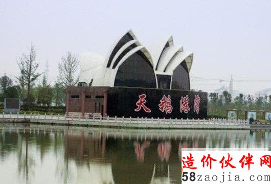 山寨“悉尼歌剧院”位于阜宁城南的白天鹅公园内,真实名称为“天鹅港湾”,建筑本身其实是一个集餐饮、休闲、健身于一体的饭店,占地约200平方米,上下两层,总建筑面积420平方米。因屋顶设计成几片竖立着船帆状,形似澳大利亚的悉尼歌剧院,被网友称作山寨“悉尼歌剧院”。