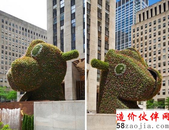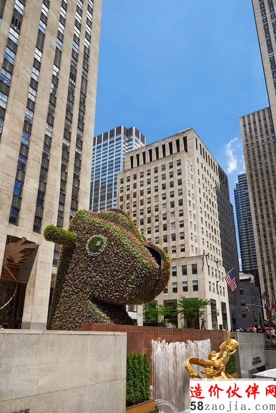 纽约洛克菲勒广场“恐龙木马”巨型花卉雕塑