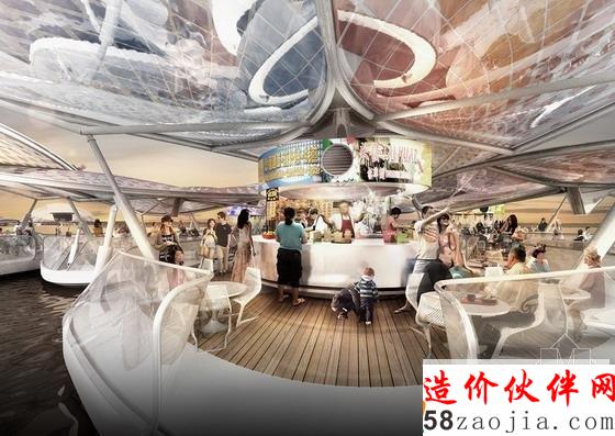 基于概念设计和未来设计的传统,SPARK 思邦创想了一个名为“星光兰”的漂浮熟食中心项目。这个设计是一种设备齐全,由太阳供能的漂浮性摊位造型,设计想表达的愿景是修复日渐疏远的新加坡与其水体之间的关系,同时宣扬和激活这种当地传统的休闲方式。
