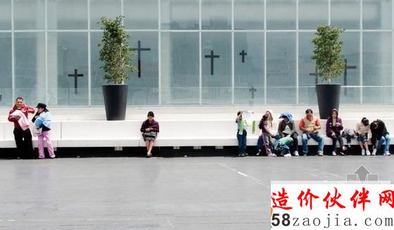 巨大的地上公共广场覆盖骨灰安置所,为社区居民和参观宗教中心的游客们提供了非正式的座位。广场将原来的瓜达卢佩教堂与马里亚纳广场上的设施连接起来,夜晚,十字形走廊被照亮,从墨西哥城上空看去仿佛一个巨大的十字架。
