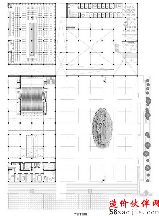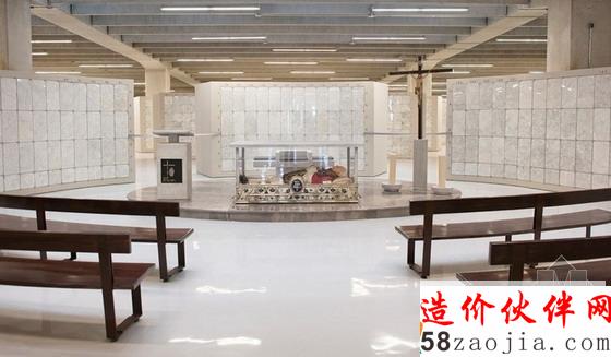 建筑被划分为四个主要的功能区,分别是福音中心,其中礼堂可以容纳850人;瓜达卢佩博物馆;13 000㎡自然采光和通风的市场,集中了原本散布周围街区的1 000家小贩;以及可容纳超过120 000个骨灰盒的地下骨灰安置所。带天窗的十字形走廊将四个功能单元连接起来,并从视觉上对其进行了划分。