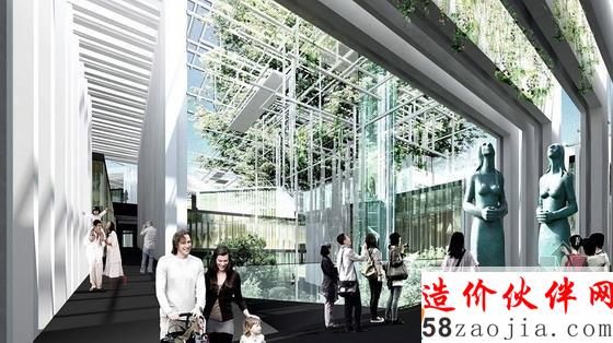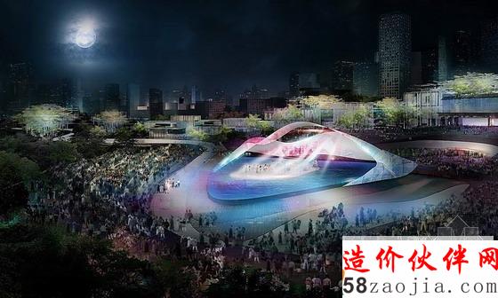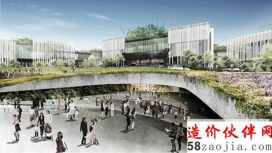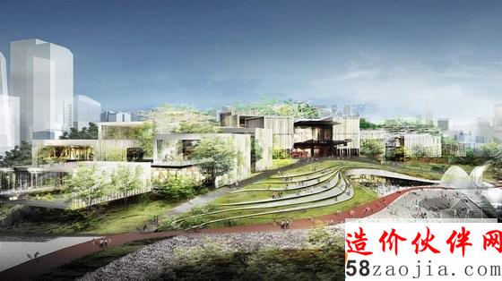 为了最大限度的提供市民共享的绿色生态活动场地,设计中把不需要直接采光并且体量较大的剧场空间以亲土建筑的形式半下沉布置,剧场的上部形成了与群众活动广场相连的坡地景观,为市民提供多功能的户外活动场地。