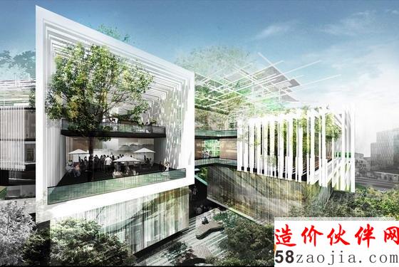 建筑与景观形成聚落式布局,各建筑向心布置,形成三大以庭院花园为中心的建筑功能区。