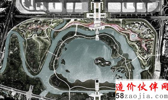 城市中轴线的延伸打造,解决城市与公园的交通和视线联系,也形成了岭南大观园与海珠湖环湖公园的串联。