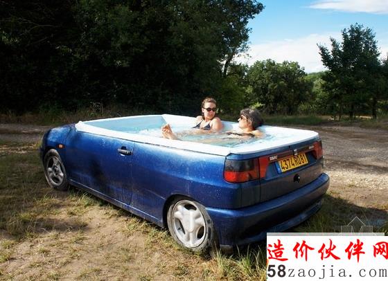 轿车改造而成的欢乐浴缸