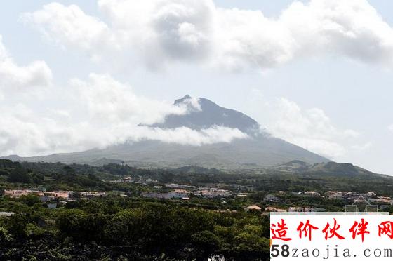 皮库岛葡萄园远处为葡萄牙最高峰皮库山