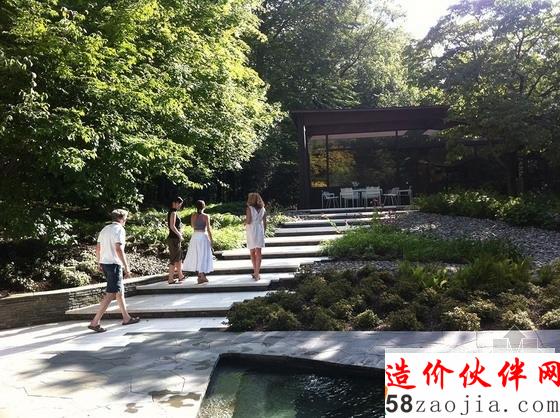 Bedford House位于森林保护区的一处山坡上,其前身是坐落在一片4英亩的土地上、于20世纪50年代修建的周末度假屋,旁边紧邻占地225英亩的自然保护区。木材、石材、混凝土和植物灯有机材料及合成材料的混合运用将内外部连为一体,并与风景、泳池和住宅和谐交融。