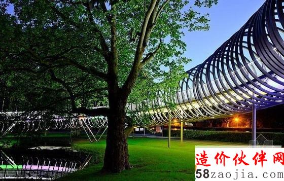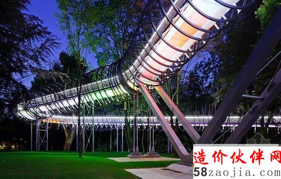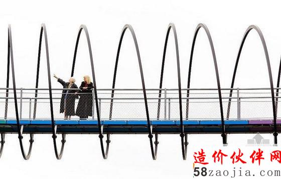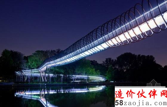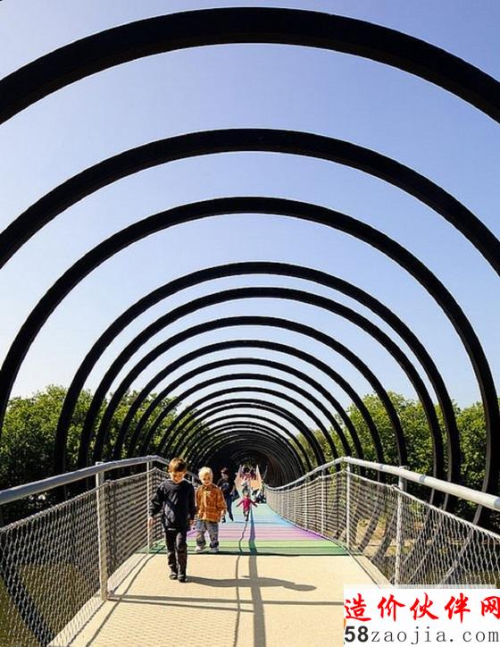 这座桥名叫“Slinky Springs To Fame ”,位于德国的奥伯豪森市,横跨莱茵河。是由艺术家托比亚斯Rehberger和施莱克Bergermann设计而成,桥身共用了496个钢圈,每到夜晚,彩灯亮起,人们在绚丽的桥中穿行,仿佛走在玩具桥中一样。