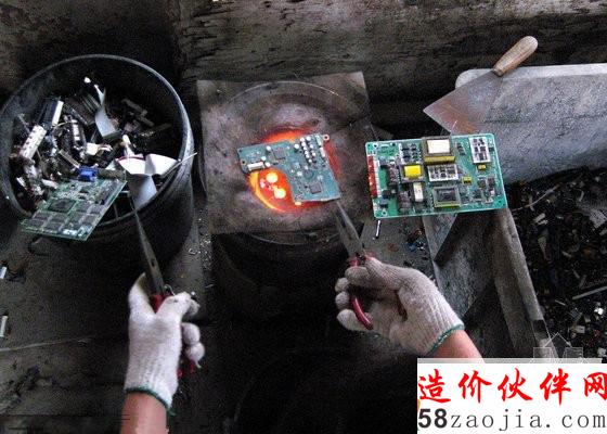绝大多数小家庭作坊拆解废旧电子电器则沿用的是最传统的方法。“先是拆,即由人工拆分出铁、铜、塑料、电路板,然后用碳火炉烤熔出电路板上的零件”,贵屿镇南阳乡电子垃圾经营大户郭钱运(化名)告诉记者,“如果有金子等贵重金属,就用硫酸洗出来,这叫‘洗金’;如果烧出来有铜,就叫‘烧板’。”