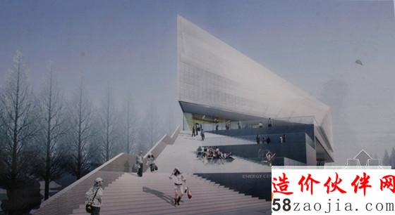 建筑位于一个狭长的锐角三角形地块上,而且这座建筑竟然只用了一年半时间就完成了。设计能源中心的建筑师介绍,“我们巧妙选用了‘直纹双曲面’,连接上、下两边等分点的龙骨都是直线,水平的百叶每一根也都是直线。其新锐、独特的造型,全部由直线渐变的构造方式实现。”