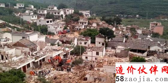 地震导致巧家县居民房屋受损(8月3日摄,手机照片)。据云南省民政厅报告,经初步统计,截至8月3日18时50分,地震已造成巧家县26人死亡、2人失踪、79人受伤(其中7人重伤),具体灾情正在进一步统计之中。