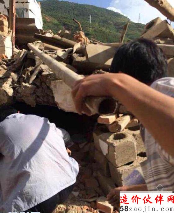 8月3日,在巧家县,救援人员在搜救被埋人员(手机照片)。据云南省民政厅报告,经初步统计,截至8月3日18时50分,地震已造成巧家县26人死亡、2人失踪、79人受伤(其中7人重伤),具体灾情正在进一步统计之中。