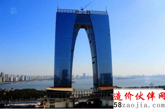 “大秋裤”:位于苏州金鸡湖畔的地标建筑东方之门,“新裤子”刚刚穿好。