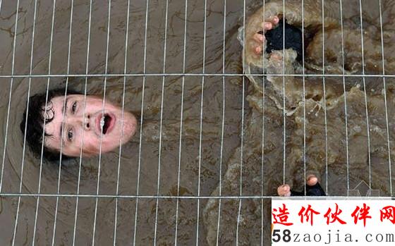 选手淡定地游过覆盖铁丝网的水塘。强悍泥人里面与水有关的项目很多,其中不少和铁丝网甚至电线有机结合:一项名叫“电鳗”的障碍项目就要求选手们穿过挂满通电电线的水塘,中途不少人被电得哇哇叫。