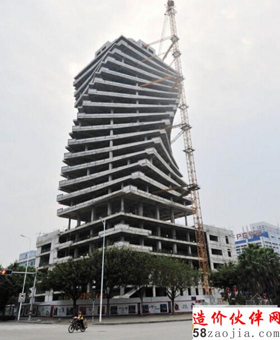 2013年1月,网友报料这栋怪异的大楼,被戏称为“拧麻花大楼”。2013年12月,媒体报道这栋大楼于2008年动工建设,主体已接近尾声,进入装修阶段。疑因建设成本、装修方案等因素,于当年年初已暂时停工。