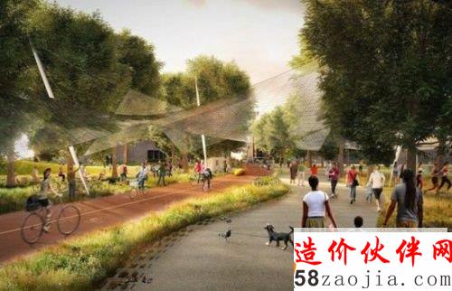 自行车道:带太阳能面板的遮雨棚可以发电,同时帮助行人避雨。