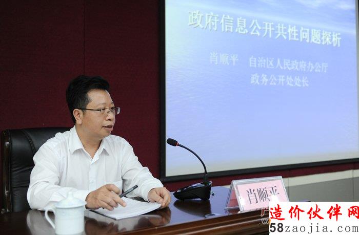 自治区人民政府办公厅政务公开处处长肖顺平作“政府信息公开共性问题探析”主题讲座