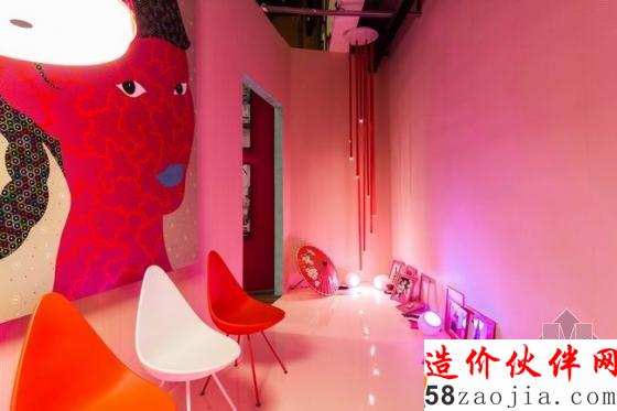 设计师通过装置艺术的概念“无缝插入”调皮、有趣、明亮、异国情调和舒适的氛围来营造咖啡厅内部。空间分为9个连贯区域,分别为PatternPlay,ArtEffects,TheNewTradition,ModernArt,PrettyinPink,MyFavoriteIcon,,FantasticClasic,JungleFever和Library。每一个装饰及设计图案都通过设计师的眼睛反映了艺术生活都有着自己的解释。从而为人们带来充满设计概念的艺术咖啡馆。