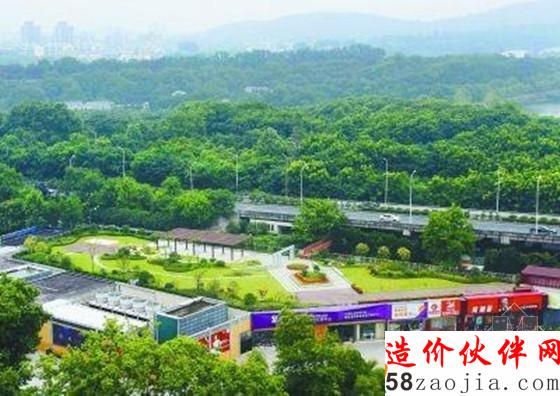该屋顶花园绿化面积约3000平方米,种植红枫、紫薇、五针松等喜光、耐寒、不易倒伏的植被,改变原有屋顶绿植冬天易枯死的现状,使得屋顶花园与钟山风景区融为一体,成为广大游客的一处休憩景观台。