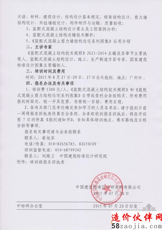 本文为《装配式混凝土结构技术规程》JGJ1-2014和《装配式混凝土剪力墙结构住宅系列图集》宣贯及关键技术应用培训班的通知及报名回执表。
