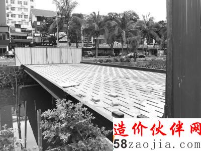 海口市海甸五西路一座在建的钢架结构的跨沟便桥