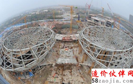 项目负责人说,没有一道轴线是横平竖直的,全是弧形,因此不论钢材还是外立面的材料,都是量身定制。钢材也要定制,光钢材要用掉4万吨。整体建筑可以抗8级地震。