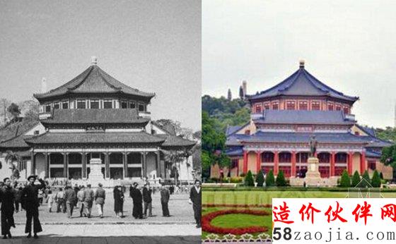广州中山纪念堂是广州人民和海外华侨为纪念孙中山先生集资兴建的。1929年1月动工,1931年11月建成。这里原是1921年孙中山先生在广州出任临时大总统时的总统府旧址。左图为1949年的中山纪念堂,右图为今天的中山纪念堂。