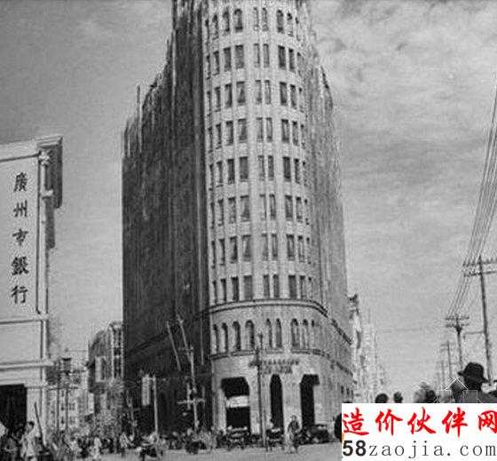建国之前,广州最高的建筑是高64米,共15层的爱群大厦,这座被誉为“开广州高层建筑之新纪元”的大楼占据了广州第一高楼宝座30年之久,是华南地区最高的建筑物,一座典型的骑楼建筑。图为1949年的爱群大厦。