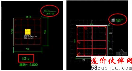 图1-2左图为提示报错KZ-a的正确柱大样图,右图为识别的柱大样图