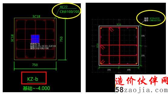 图1-3左图为未报错KZ-b的正确柱大样图,右图为识别的柱大样图