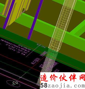 图1-4根据标高建立的柱钢筋三维图